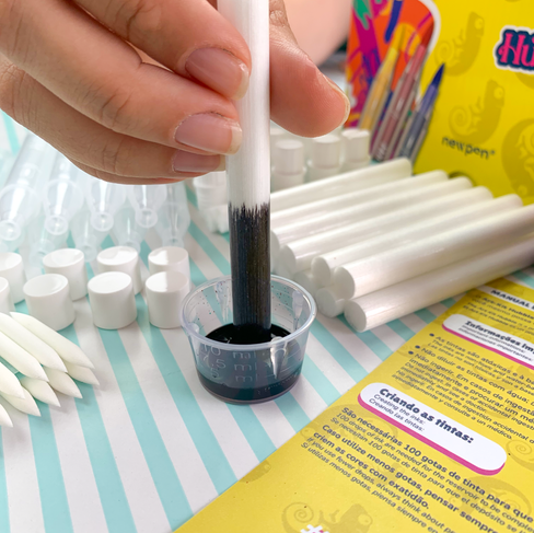 - Colocar o refil na mistura e esperar absorver toda a tinta em seguida já colocar no corpo da caneta